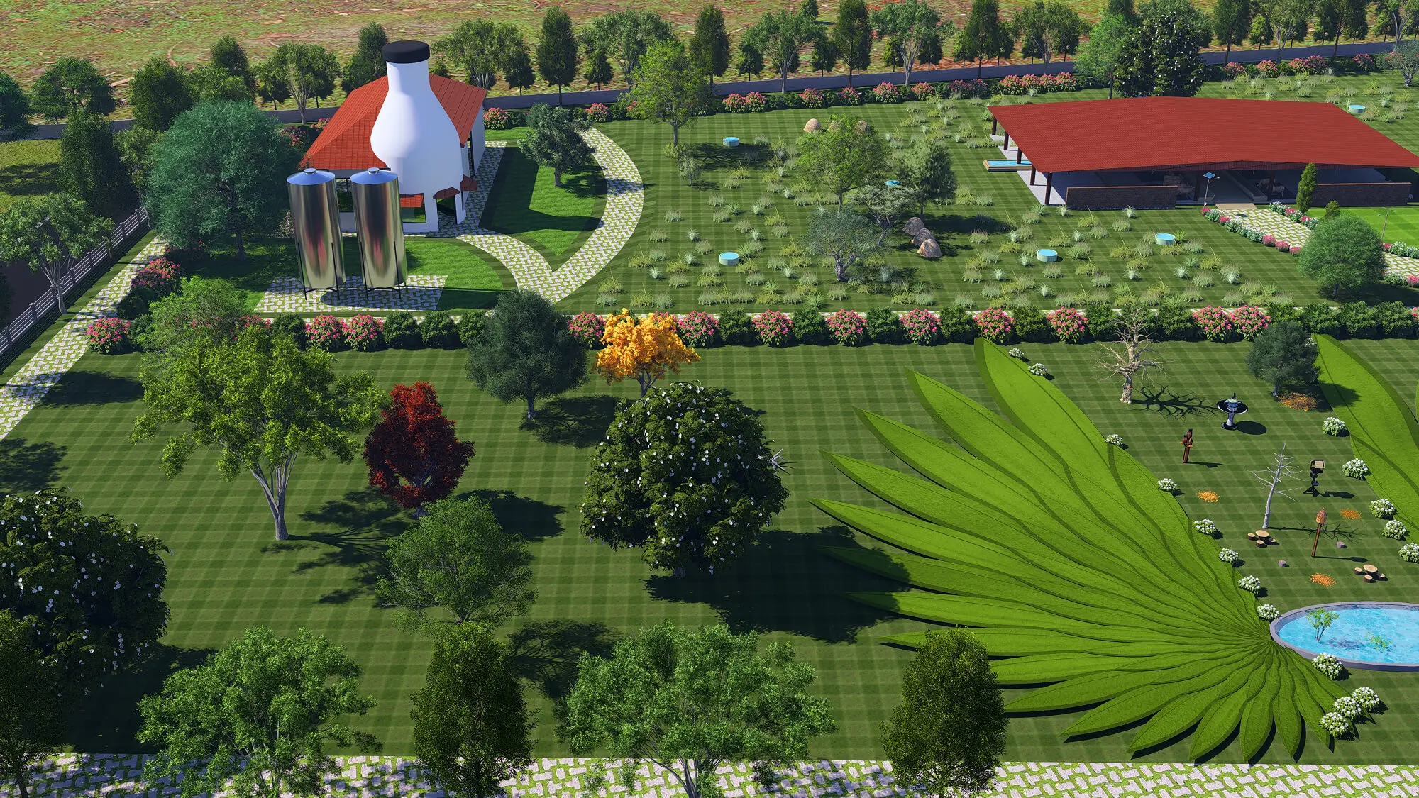 The presence of the Gau Shala creates a natural sanctuary of peace, grounding the estate's spiritual energy.